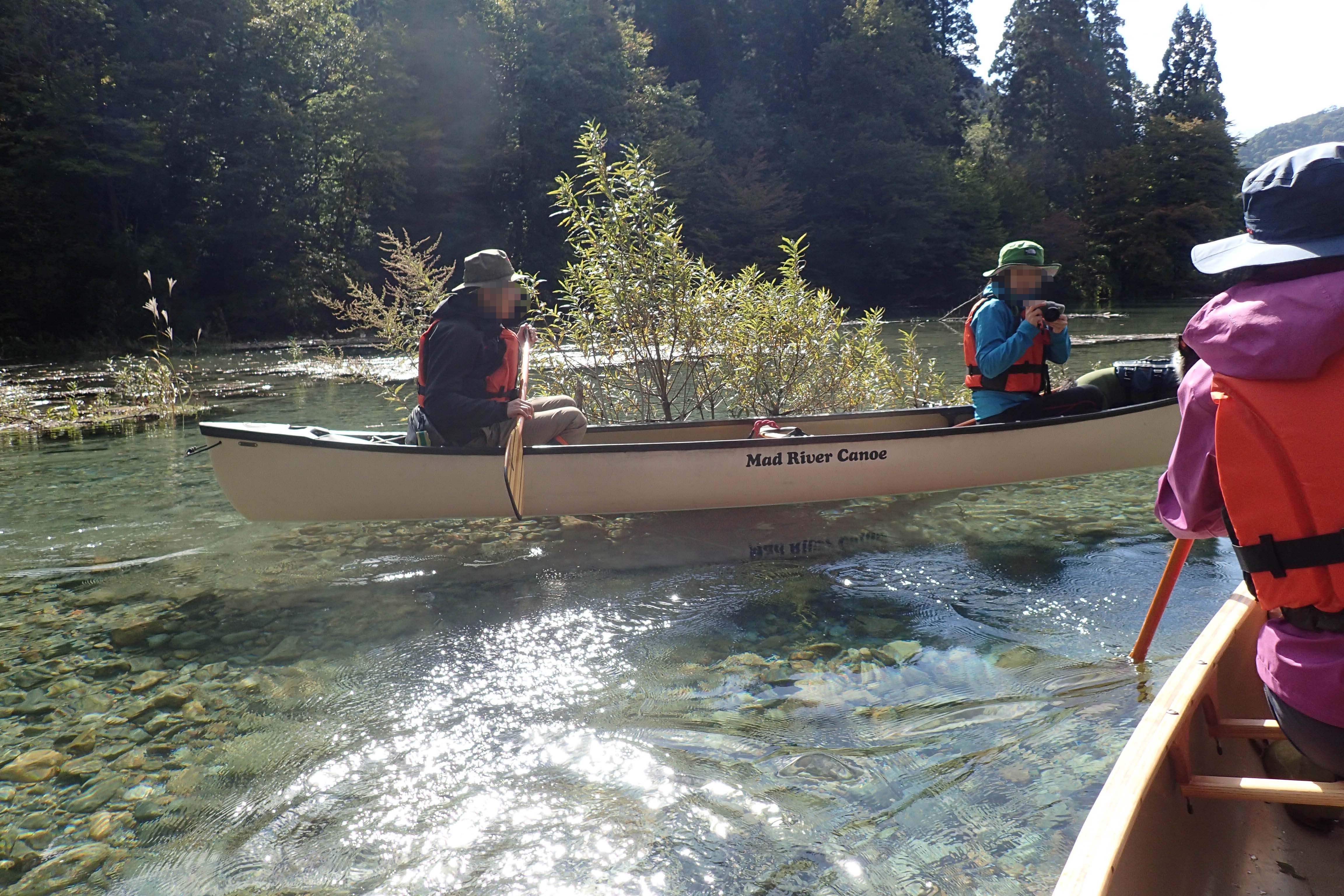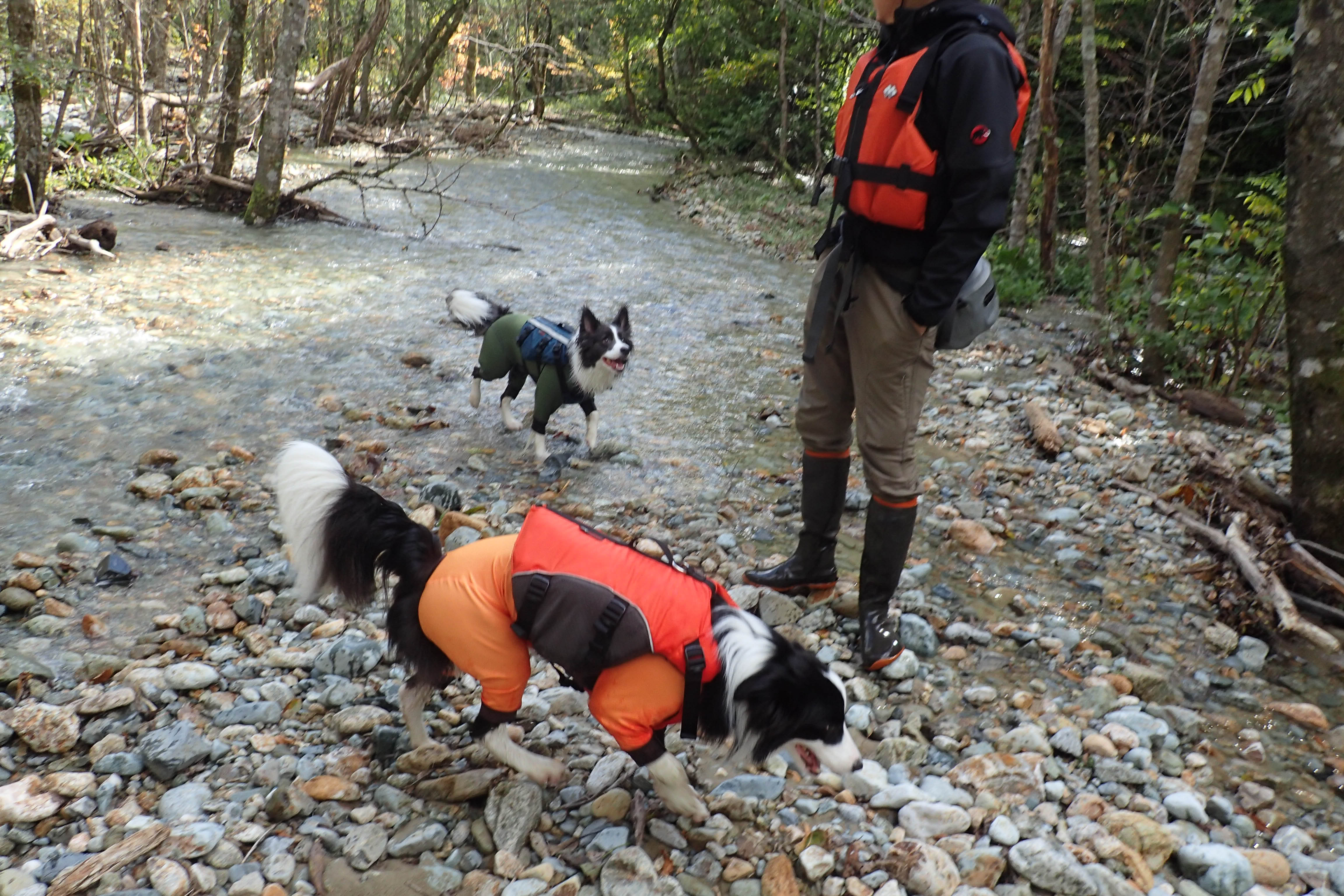 車二台あればカヌーで川下りできるね! と以前からカヌーマスター、チャナ家に誘われていましたが 今回、念願叶って行ってきました! カナディアンカヌー暦3回のシャーロック家、 静かな湖がやっとこさなのに流れている川は大丈夫か? まずは無事にエントリー 前方に瀬を発見? チャナ家の取るコースを見習っていくぞ! 高等テクニック “立ち漕ぎ” で瀬の状態を調べるチャナパパ、 さすがです! チャナ家のカヌーと同じコースをとるつもりが 大きな石に乗り上げて立ち往生! ヤバい、 このまま流れに対して船体が横向きになれば “沈” するパターンだ! 焦るシャー父、意外と動じないシャーママ。 しばらく動けずにいたが、なんとかもがいて脱出。 船底に激しい傷を残したが(泣)、 “沈” するよりはマシか。 ここはその後、チャナ家により「シャーロック家の瀬」と命名される。 無事 “瀬”を越えたところでトイレ休憩のシャー 陸に上がるとホッとした顔に。 ブルーからグリーンへ様々な色をみせる川面 紅葉とあいまって大変きれい! カヌーに乗ると、何となく暗い表情になるシャー まだ慣れてないのか? 青空に紅葉に蒼い水 船からでしか見れない景色です。 シャー、最近おしりが立派になってきた? 流れ込みに上陸してコーヒーブレイク 何から何までありがとう、チャナ家。 カヌー上ではしおしお顔でも 陸(おか)では元気いっぱいのシャー 澄んだ水に、うっすら青く色づいた川底 光が屈折して川底に手が届きそう。 チャナ家のリフレク丸も空中に浮かんでいるかのようです! 絶景スポットに連れて行ってくれて、ありがとうチャナ! また色々行きましょうね〜