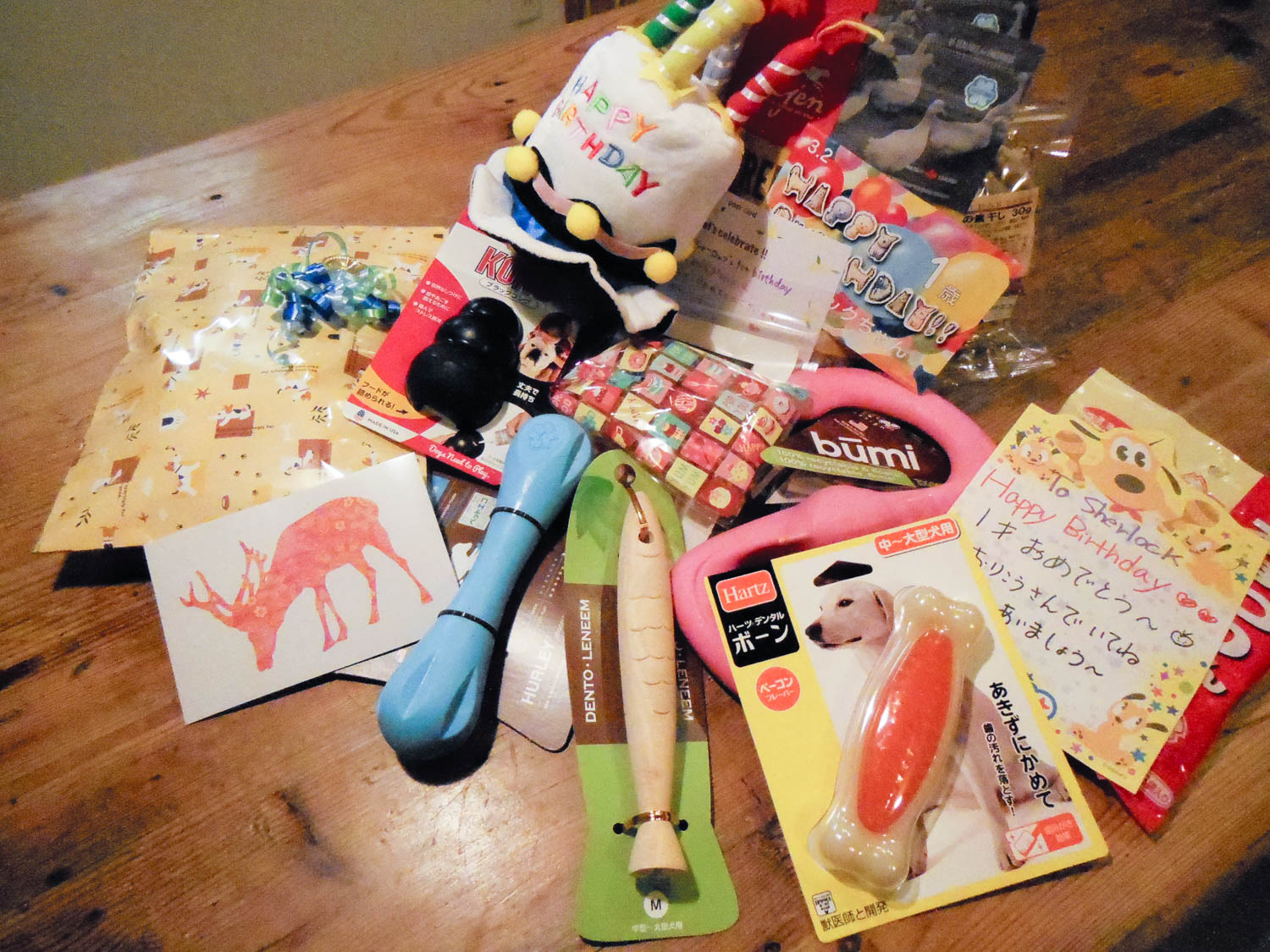 昨年8月!我が家の家族の一員になったシャーロック❤ 3月2日の誕生日を迎え、満一歳になりました\(^o^)/ おめでとう!!!シャーロック❤❤❤ バースデーケーキとたくさんのプレゼントに囲まれ、 ついでにケーキの帽子もかぶって、本日の一大主役です! 「なに、やらせるんでしゅか~」 こんなにたっくさんのプレゼントが!!! 選り取り見取りで迷っちゃいます(^^♪ 贈ってくれたみなさん、ありがとうございました~(^_^)/~ <先月のシャー> だんだん春めいてきた仙台ではありますが、 ちょっと山に入ればまだまだ雪があります。 せっかく買ったスノーシューなので、ここは使い倒すべく、 先日ポーレナ家、bocopeco家といっしょに遊んだ山へ 我が家だけでスノーシュートレッキングに行ってきました。 ところが、この日はけっこうなすごい吹雪!!!きびし〜 入り口もなかなかわからなーい(>_<) やっと見つけて入り込むも、 前回行った道が全然わからない~ 「天は我々を見放した…」 遭難するかと思いました(^_^;) が、駐車場はすぐそこでした。。。。。 シャーロック家のアウトドア生活はどこまでいけるのか? はなはだ疑問なのでした。。
